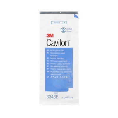3M™ Cavilon™ No Sting Barrier Film forms a transparent and breathable protective coating between skin and the adhesive of the securement dressing device or tape. When the dressing is changed, the film is removed instead of skin cell layers. 3M™ Cavilon™ No Sting Barrier Film 3344E, is a 1.0 mL foam wipe.