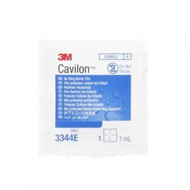 3M™ Cavilon™ No Sting Barrier Film forms a transparent and breathable protective coating between skin and the adhesive of the securement dressing device or tape. When the dressing is changed, the film is removed instead of skin cell layers. 3M™ Cavilon™ No Sting Barrier Film 3344E, is a 1.0 mL foam wipe.