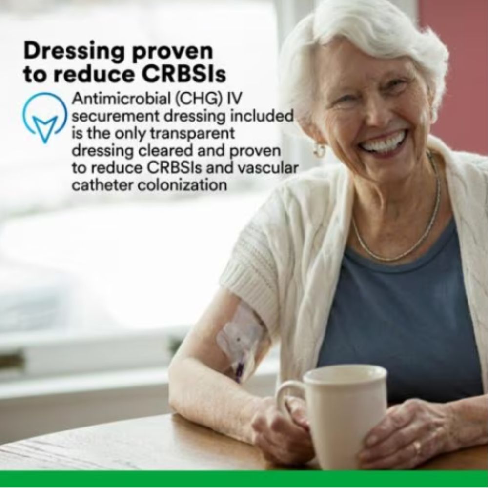 3M™ Tegaderm™ PICC/CVC Securement Device and CHG Chlorhexidine Gluconate I.V.Securement Dressing are specifically designed to enhance securement of the device, helping to ensure the best possible experience and outcomes. The system is designed to stay in place for up to seven days, yet removes gently, delivering the securement and comfort your patients deserve. 3M™ PICC/CVC Securement Device + CHG and Tegaderm™ I.V. Advanced Dressing is indicated—and clinically proven— to reduce catheter-related bloodstream infections (CRBSI) by 60% in patients with central venous or arterial catheters.
