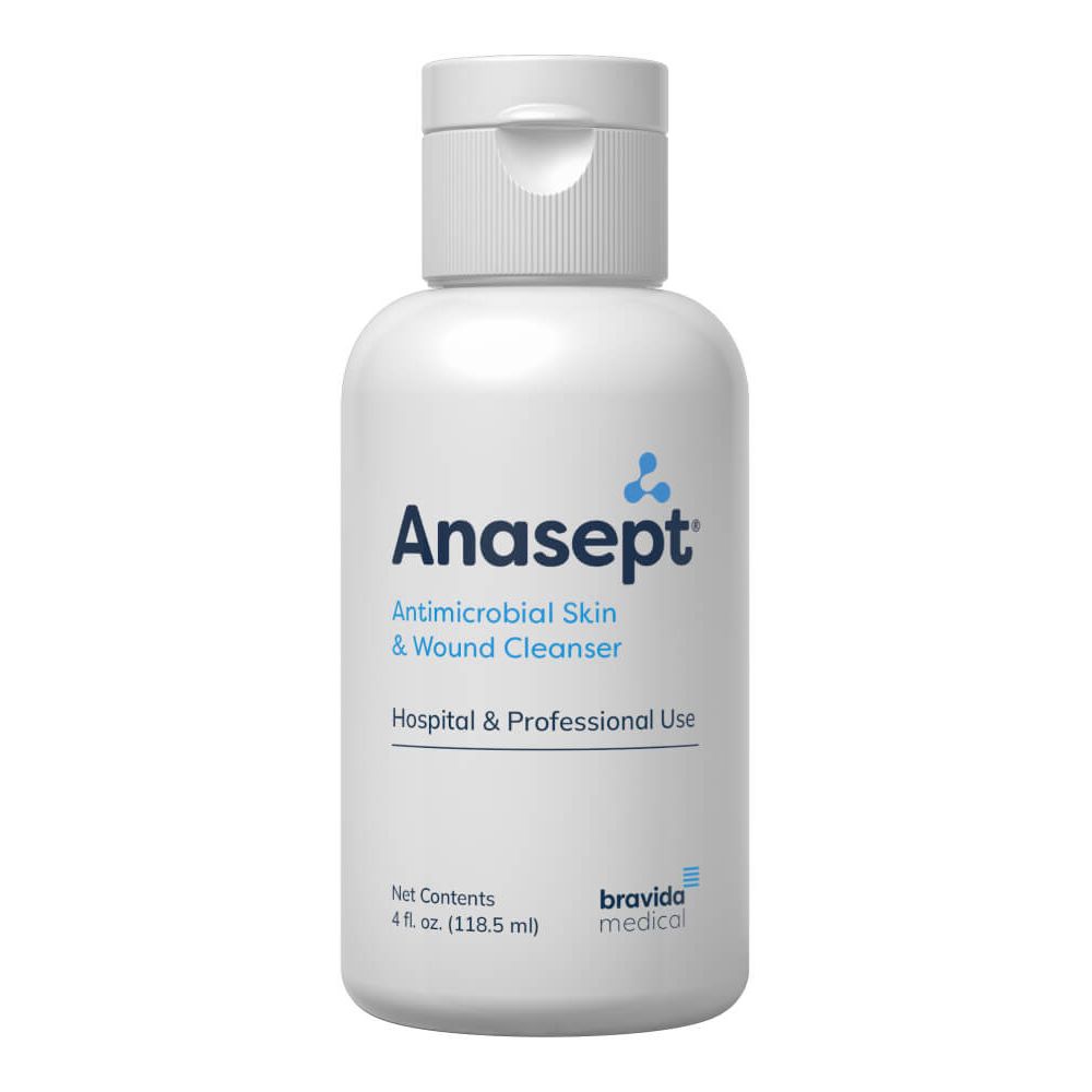Anasept® Antimicrobial Skin and Wound Cleanser is a clear, isotonic liquid that helps in the mechanical removal of the debris and foreign material from the application site. Dirt, debris and foreign materials are mechanically removed by the action of the fluid (Wound Cleanser) moving across the wound bed or application site. Anasept Antimicrobial Skin and Wound Cleanser contains a 0.057% broad spectrum antimicrobial agent sodium hypochlorite. It inhibits the growth of bacteria such as Staphlyococcus aureus, Psuedomonas aeruginosa, Escherichia coli, Proteus mirabilis, Serratia marcescens, including antibiotic resistant Methicillin Resistant Staphylococcus aureus (MRSA), Vancomycin resistant Enterococcus faecalis (VRE), Acinetobacter baumannii, Clostridium difficile and Carbapenem Resistant E.coli (CRE) that are commonly found in wound bed as well as fungi such as Candida albicans and Aspergillus niger.