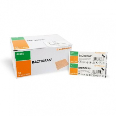 BACTIGRAS Tulle Gras is presented as a gauze of leno weave impregnated with white soft paraffin BP containing 0.5% chlorhexidine acetate BP. Each sterile dressing is sealed separately in a foil-laminated pack. Dressings are available in 10 cm x 10 cm, 5 cm x 5 cm and 15 cm x 20 cm sizes. Cartons contain 10 or 50 individually wrapped sterile dressings.