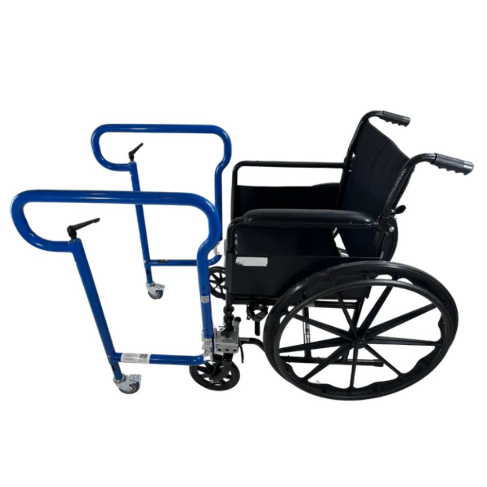 Device includes 2 arms/sides, 2 universal wheelchair connectors. Some assembly required; NO tools necessary. Online setup and demo videos available. 2-year warranty.
