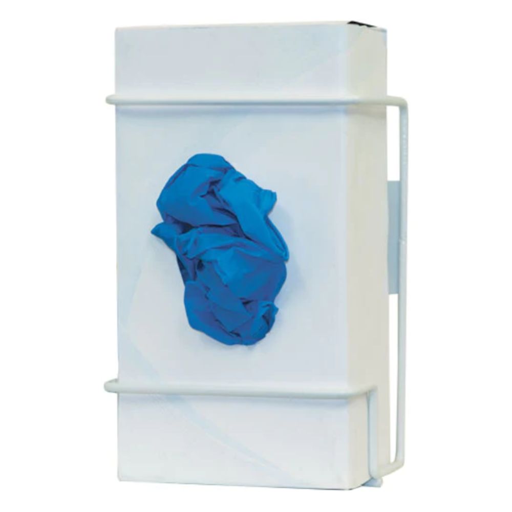 Dispensers made of wire provide a cost effective alternative and a simple solution for holding glove boxes.