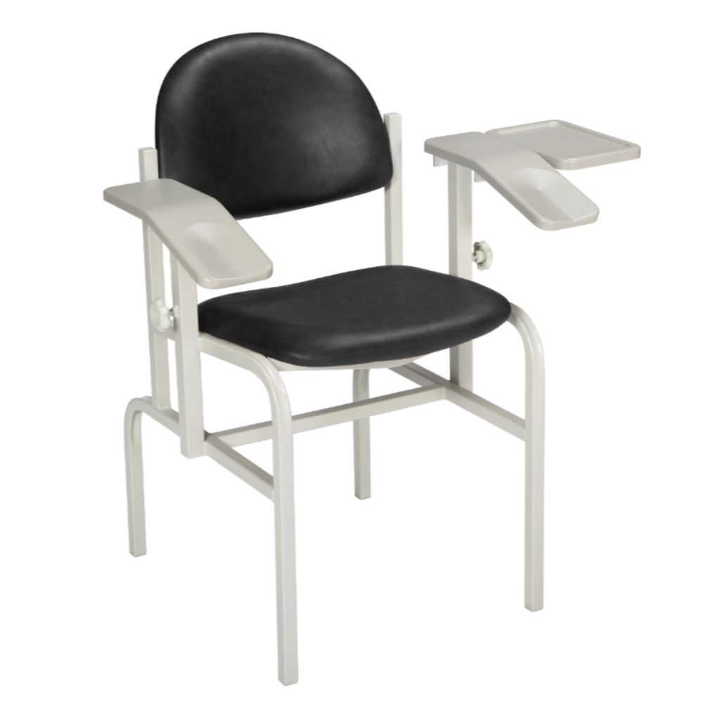 The Brewer Blood Drawing Chair includes two add-on work surfaces to accommodate prep materials, paperwork, and viles. The optional drawer easily attaches to either side of the chair. Most importantly, these work surfaces are covered in a bacteriological, chemical and fungal resistant material, ensuring they are easy to clean and maintain.