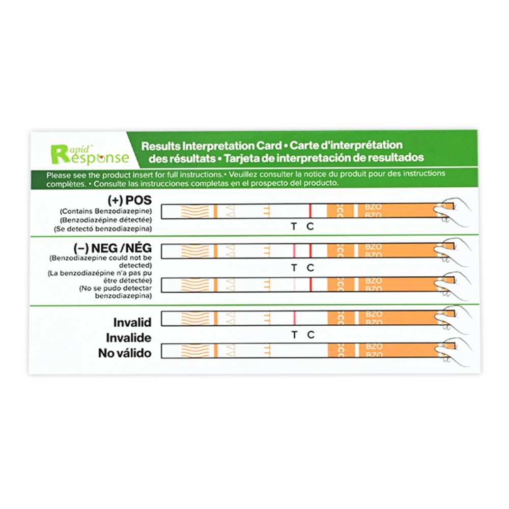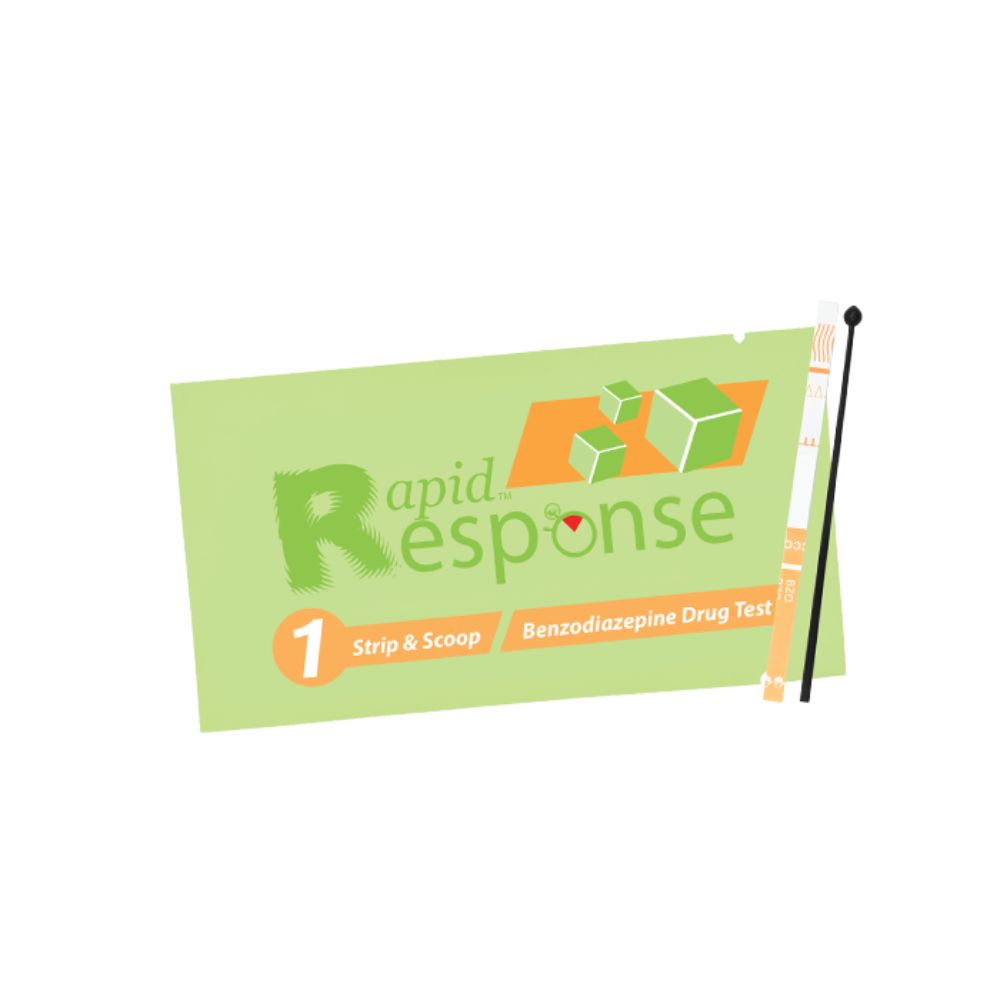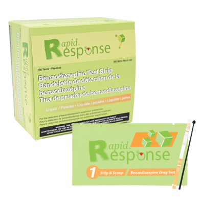 The Rapid Response™ Benzodiazepine Test Strip (Liquid / Powder) is a rapid visual immunoassay for the qualitative, presumptive detection of benzodiazepine in suspicious substances (liquids or powders) at the cut-off concentration of 300 ng/mL. Easy to use with detailed instructions for testing both liquid and powder samples. For forensic and IVD use.