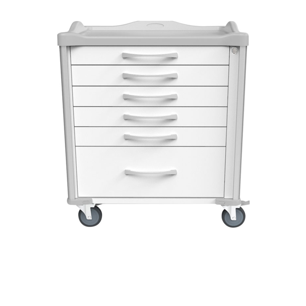- 6 soft close full expansion drawers to accommodate a typical layout of top drawer for incidentals, 4 drawers for strip medication bins, and a drawer for 1 or 2 narcotics boxes and liquids