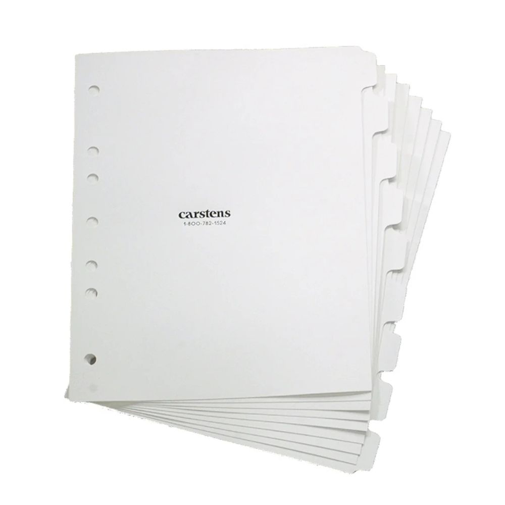 Carstens® Blank Divider Set, Side Opening, White, 9 Tab