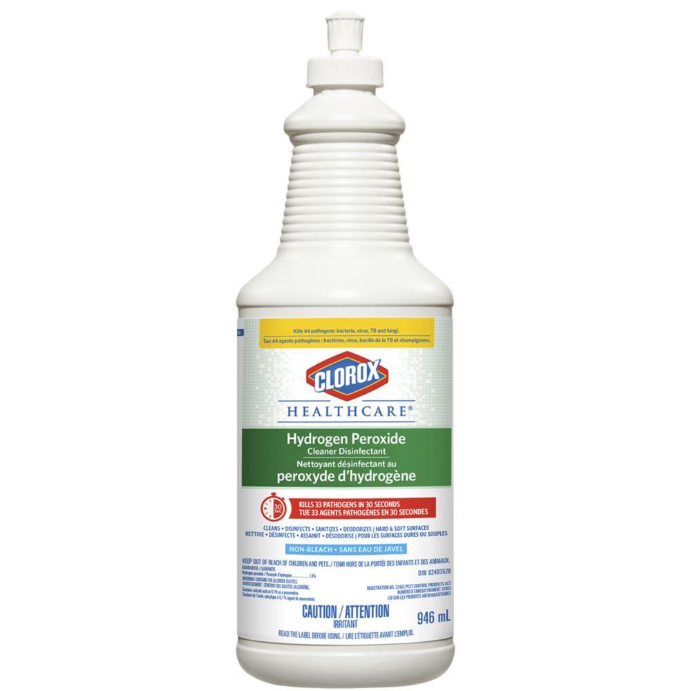 Clorox Healthcare Hydrogen Peroxide Cleaner Disinfectant is engineered with a patented hydrogen peroxide formula for fast kill times on hard and soft surfaces, cleaning power, broad surface compatibility and no harsh chemical odours or fumes.