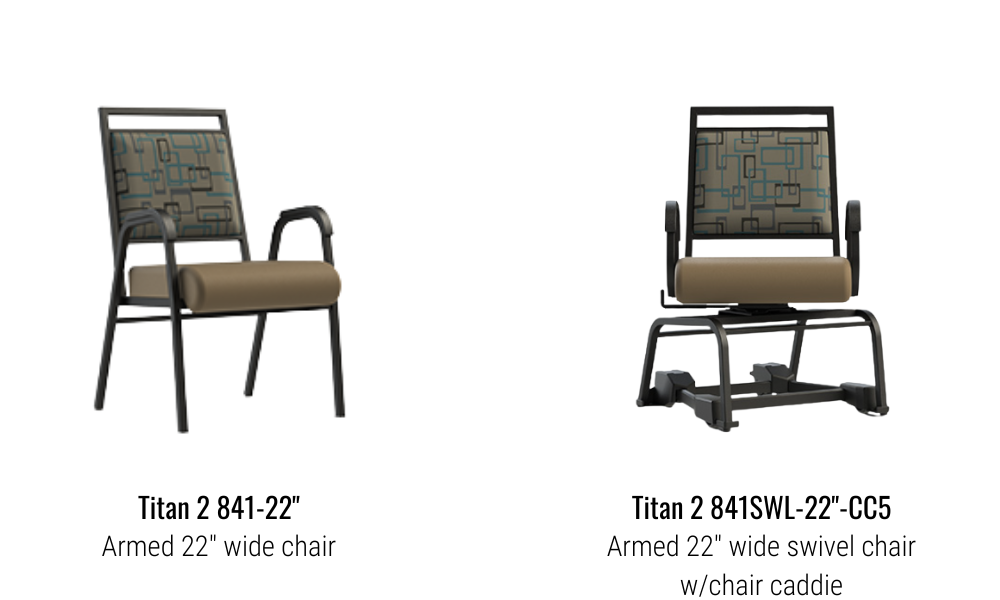 The Titan 2 Series of chairs balances elegance and sophistication with versatility and durability. The luxuriously upholstered seat and back provide support and confidence required by many of today’s full-sized guests.