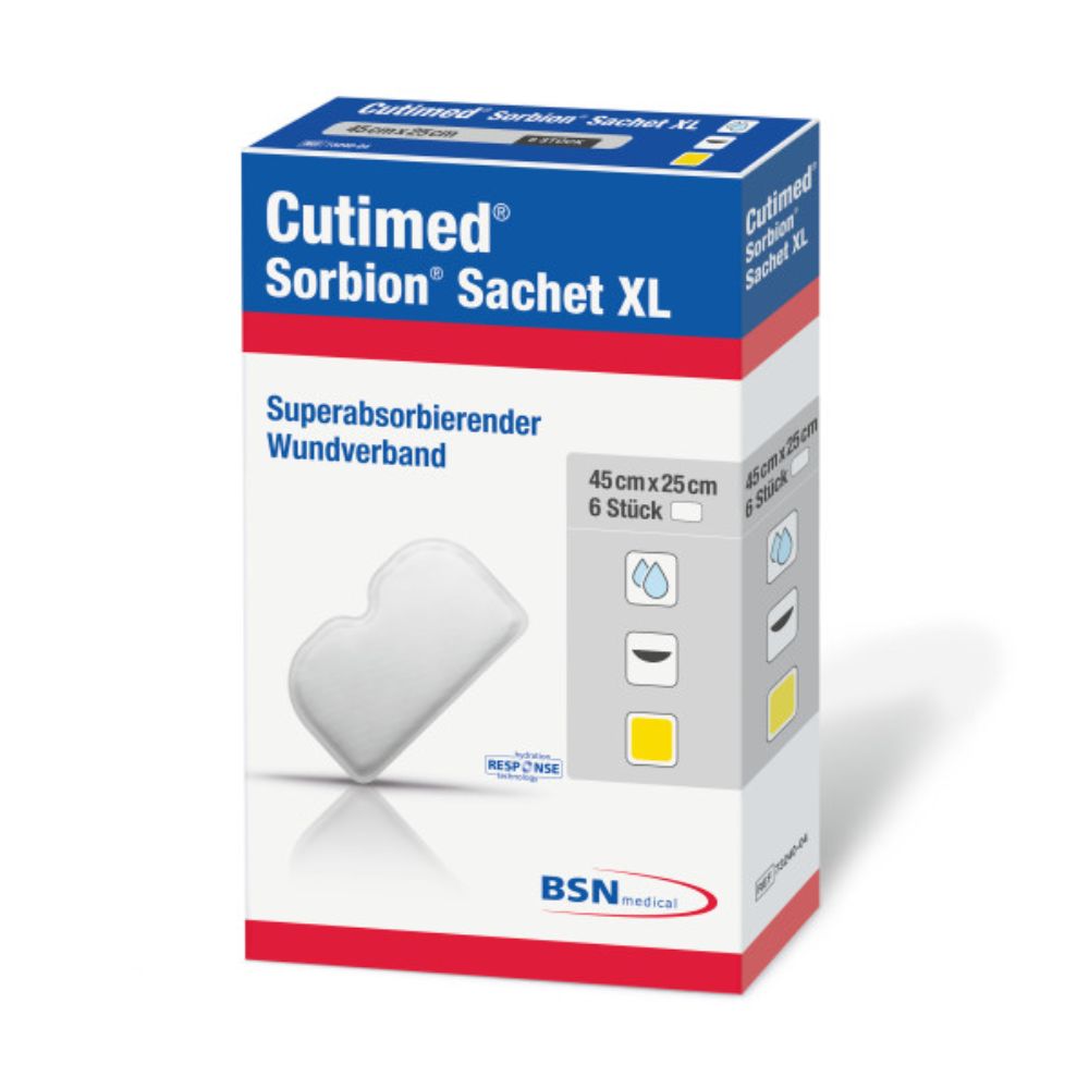 Cutimed® Sorbion® dressings have the excellent ability of quickly absorbing large amounts of exudate and locking it within their inner core, even under compression, therefore reducing the frequency of dressing changes. Cutimed® Sorbion® dressings also have the potential to remove chronicity-causing factors and thereby support wound healing; they provide gentle debridement, reduce the concentration and activity of MMPs and immobilize micro-organisms. The unique fiber matrix offers stability even when highly saturated, thus preventing the formation of lumps and pressure points and ensuring maximum wound contact.