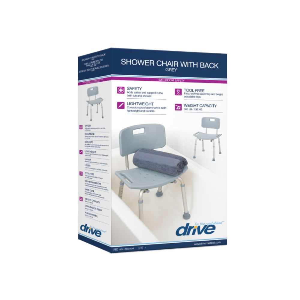 Drive® Deluxe Aluminum Bath Chair w/Back, Gray