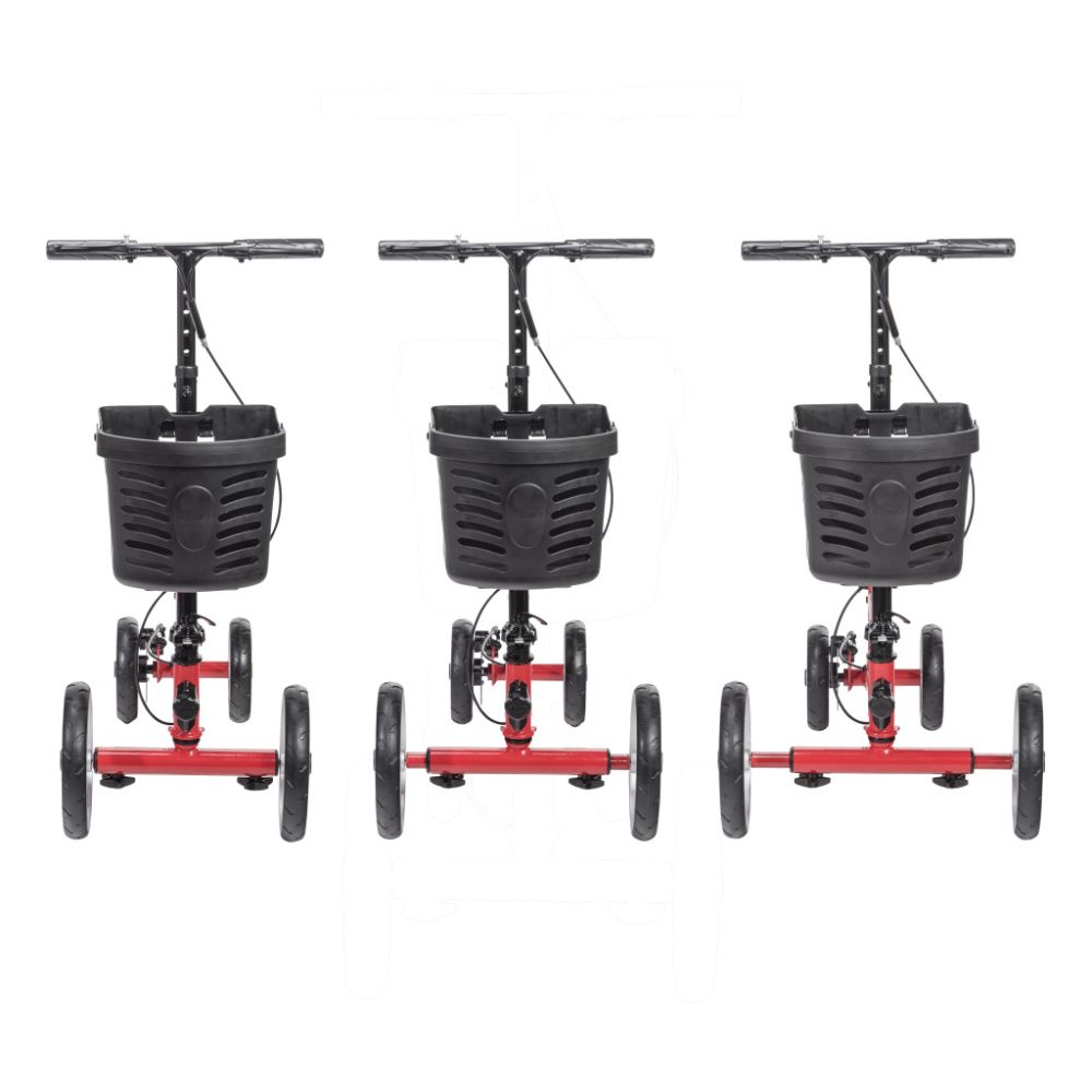 The Nitro™ Knee Walker offers users recovering from a below-the-knee injury the ability to remain mobile and glide through their daily activities in an all-new sleek design. Offered in two vibrant colors, this patented design features width expanding front axels to provide the user with adjustability and support to meet desired turning radius when navigating in different indoor and outdoor settings. The ergonomic design of the adjustable knee pad provides the necessary comfort and elevation to the injured leg while the adjustable handlebar also accommodates to user preference. The lightweight frame safely encloses the brake cable inside to enhance its modern design and the foldable feature makes it convenient for storage and transport.