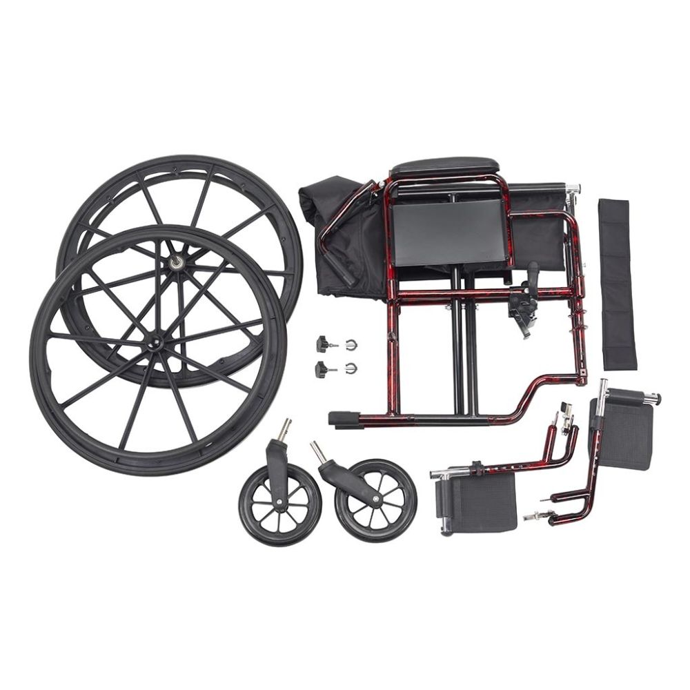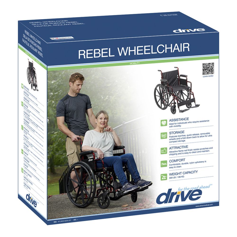 Drive® Rebel Wheelchair, Red, 18" x 16" Seat, Detachable Desk Armrests & Footrests