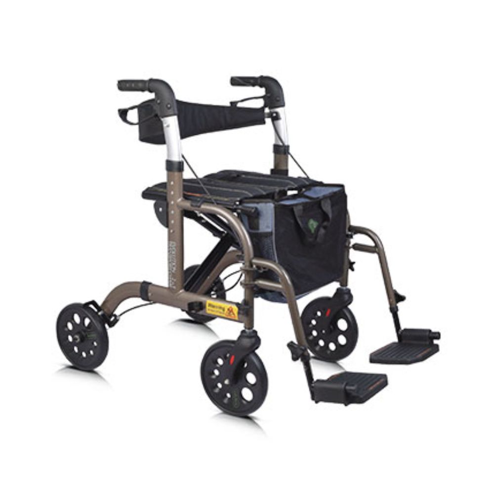 The transport chair combines both a walker and wheelchair into one easy-to-use unit