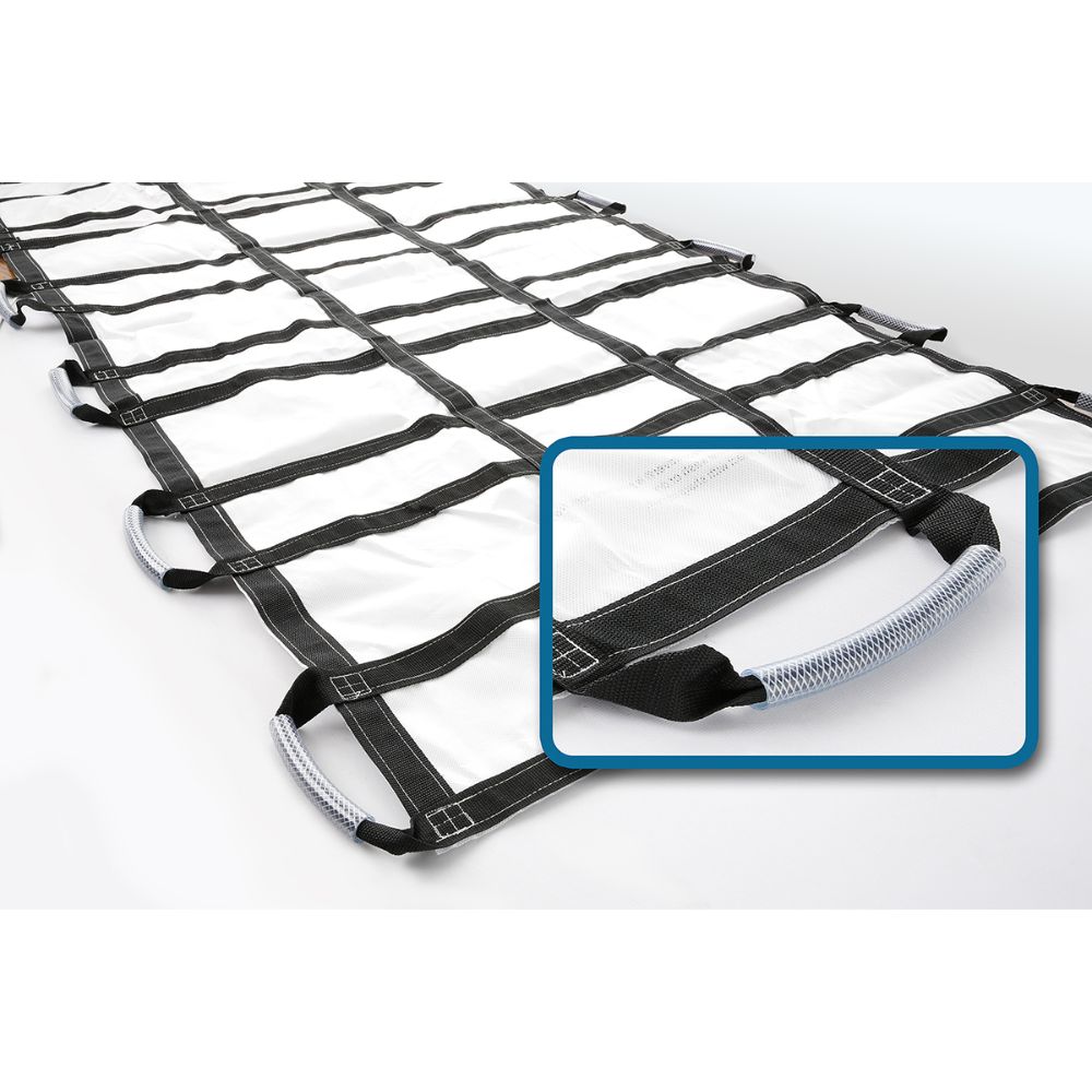 MegaMover® is a compact, cost-effective, portable transport unit used to transport, transfer or rescue patients from areas inaccessible to stretchers. The nonwoven/poly, latex-free construction holds up to 1000 lbs. Power Grip® models are equipped with padded handles for added comfort and durability. See additional information below.