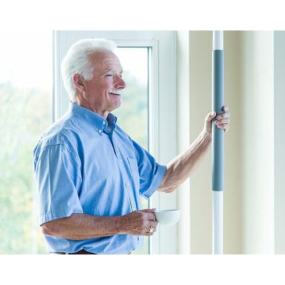 The HealthCraft SuperPole is a pressure-fit, floor-to-ceiling pole designed to help people make safer transfers in their homes. Unlike traditional grab bars, a SuperPole doesn’t need to be installed on a wall. This means it can provide 360-degree support almost anywhere in your home.
