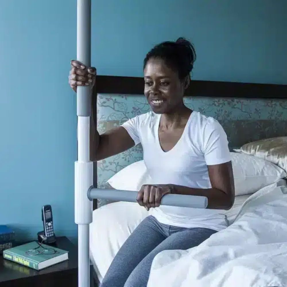 Quickly assembling in 15 minutes, this device easily fits into any living space while offering an ergonomic handle to comfortably support up to 450lbs depending on your device! The SuperPole with SuperBar is useful for providing additional support and stability when entering or exiting the bathtub, shower, or toilet.