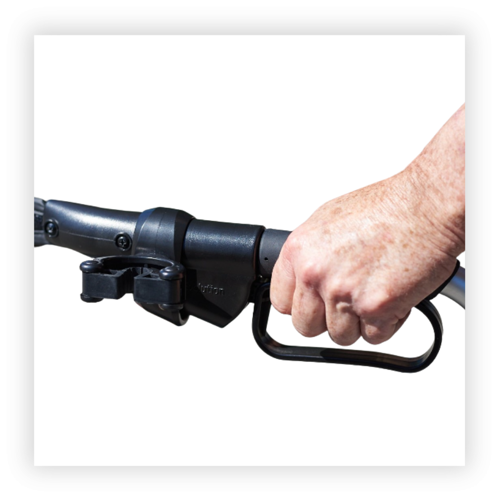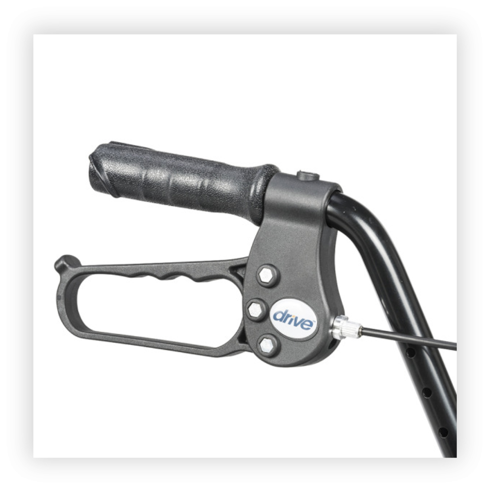The ergonomic handgrips absorb vibrations, while also placing your hand at a natural angle for better brake access. The included curb climber makes navigating obstacles easierer. This rollator is easy to fold with the pull of the strap, and the covered soft basket folds with the frame.