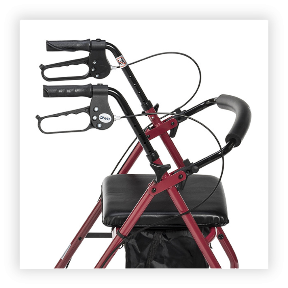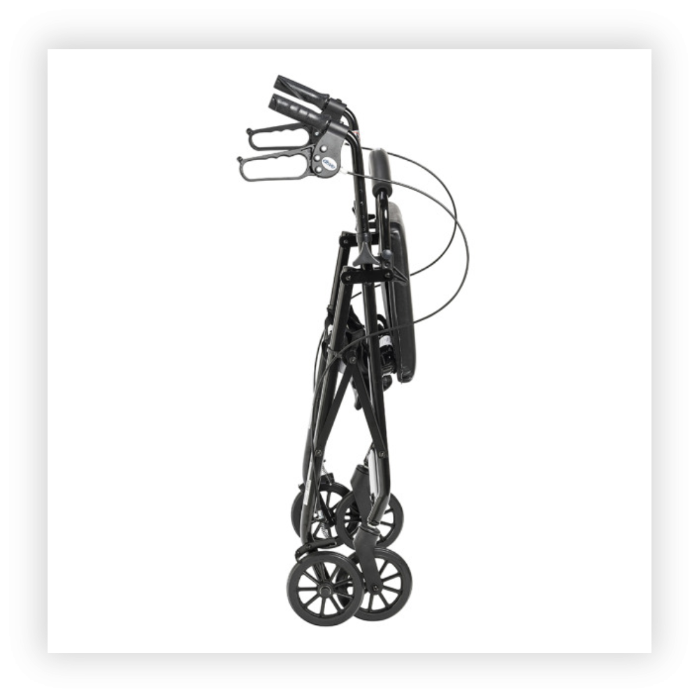 A quality rollator at an unbelievable price, The Drive Aluminum Rollator w/Padded Seat offers a lightweight aluminum frame that weighs a mere 12 lbs. and can support a person up to 300 lbs. The arms are easily height adjustable from 32" to 37" in order to accommodate a variety of heights. This rollator is a cinch to fold and comes standard with a seat and tote bag.
