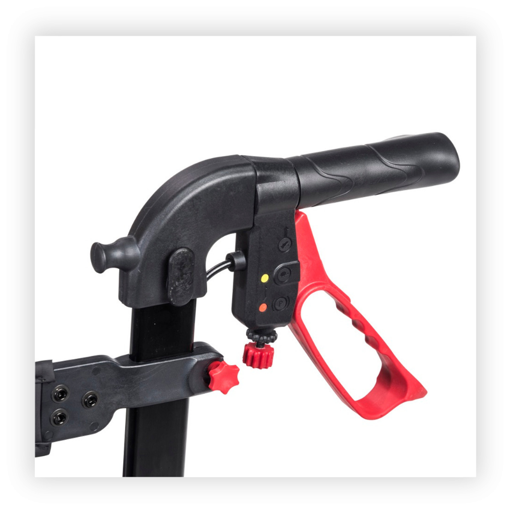 With the new padded seat cushion and wide back strap pad, users can sit in comfort and walk in style. The Trillium comes with an all-new braking system, allowing for effortless handle height adjustment and easy maintenance.