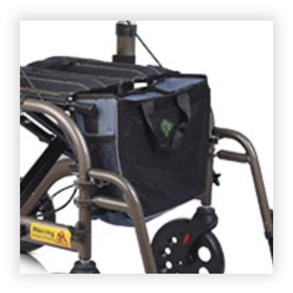 The rollator sports a unique braking system that reduces tire wear and an integrated slow-down brake for safer maneuverability over diverse terrain. When not in use, the rollator can be folded side to side with one hand and locked in place for easy transport. Other features include multiple storage bag mounting points and a wider backrest with a window for improved comfort and visibility.