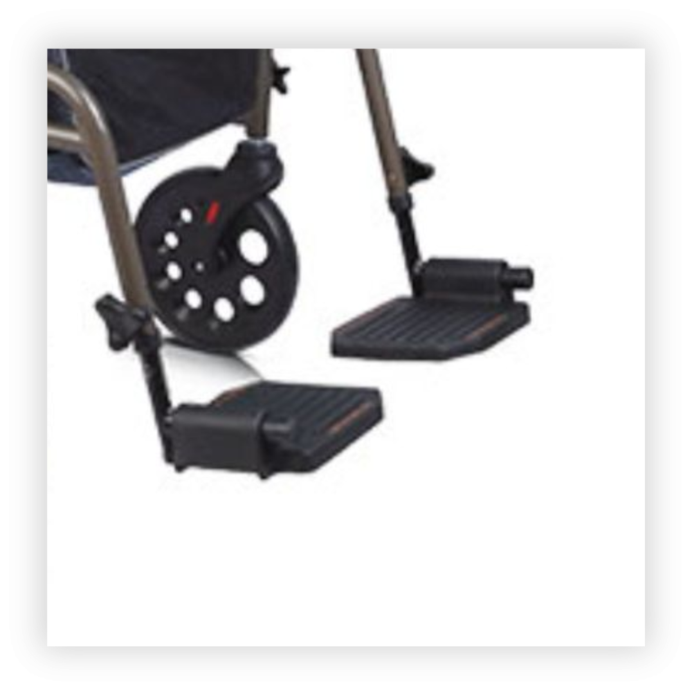 The center-folding design and folding footrest allow for easy storage. The backrest swings back for use as a wheelchair and forward for use as a walker.