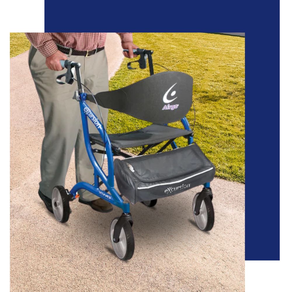 A lightweight rollator perfect for both indoor and outdoor use.