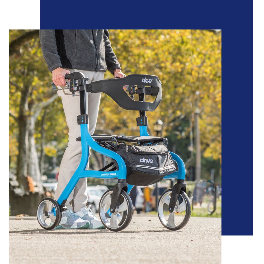 The sleek Nitro Sprint Rollator is designed to provide comfort, convenience, and control at every turn.