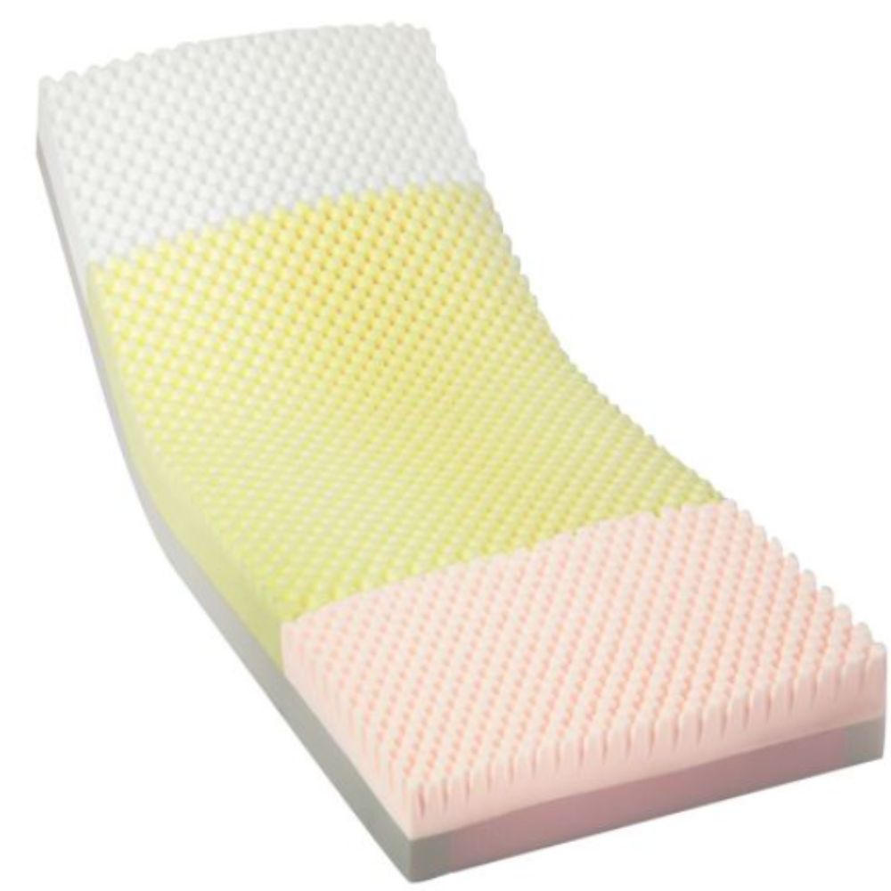 Featuring special zoned layers of high density foam for aid in pressure relief on areas susceptible to pressure ulcers and soft head and foot sections for ultimate comfort, this dual-layered mattress has the comfort and technology that users need.