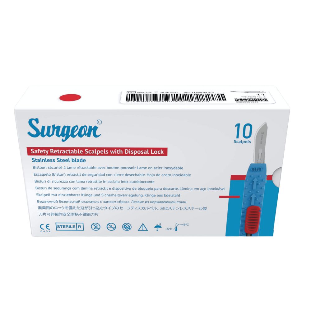 ISO 7153 specification stainless steel blade. Premium plastic and packaging materials.