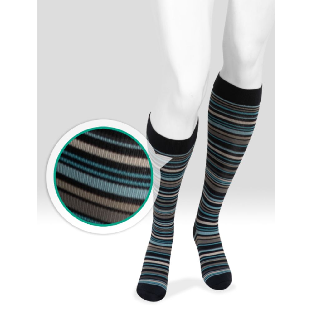 Juzo Power Vibe compression socks move with you all day, delivering firm, therapeutic compression and support that looks great. Power Vibe comes in unisex, colorful patterns and are extremely easy to put on; and they stay up. Designed with a comfort band, seamless toe and moisture wicking-material, these compression socks are cooler and more comfortable than others. The Power Vibe helps keep you grooving on the path to healthier legs.