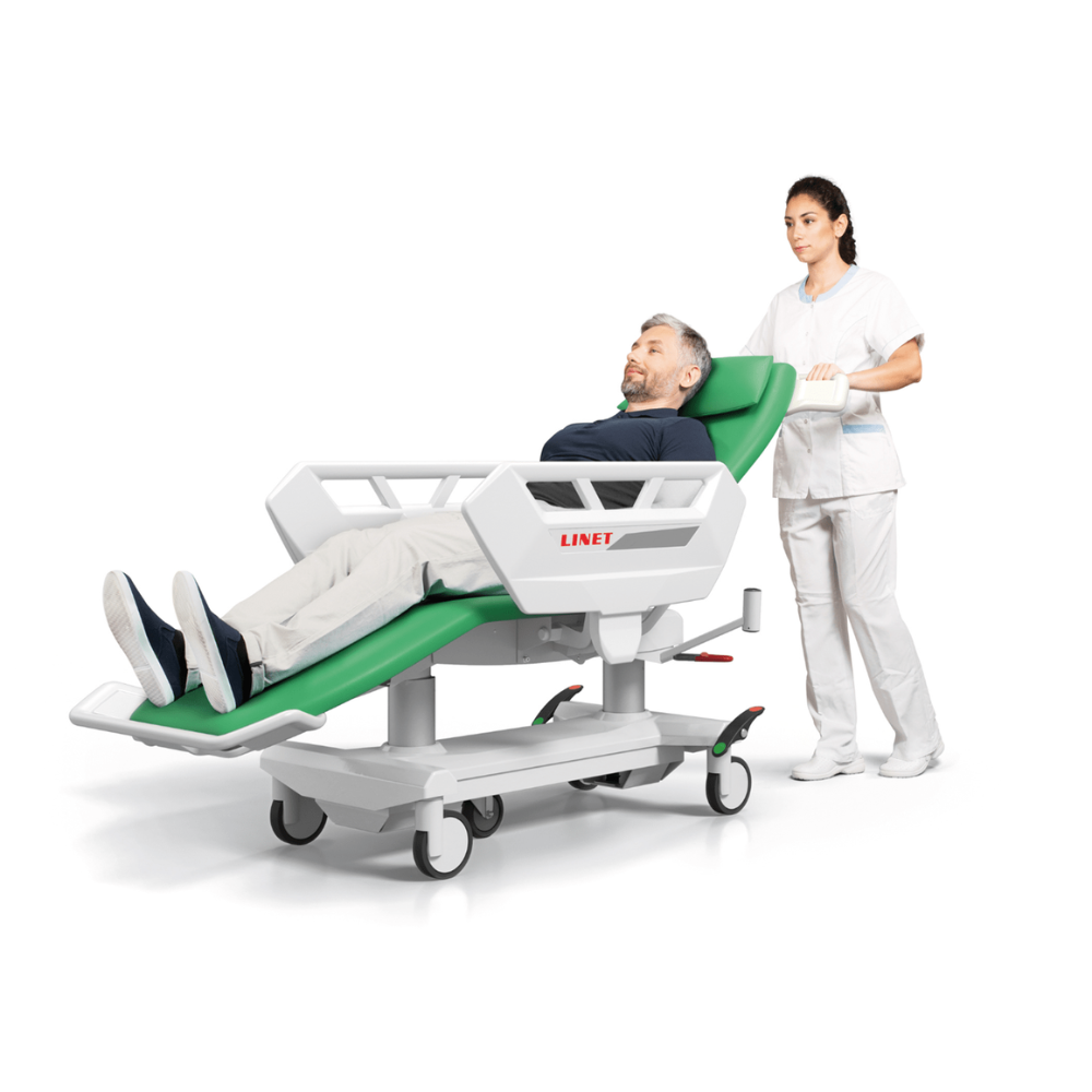 The comfort of the patient is ensured during long-term procedures by ergonomical frame and soft padding. It can also be equipped with an extra comfortable mattress. Siderails are lowered smoothly and gently thanks to SoftDrop feature. Pura further offers a variety of accessories to make patient experience even more comfortable: