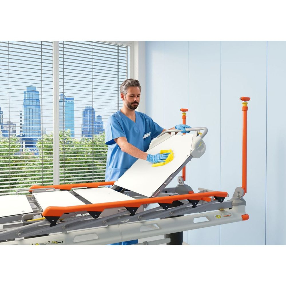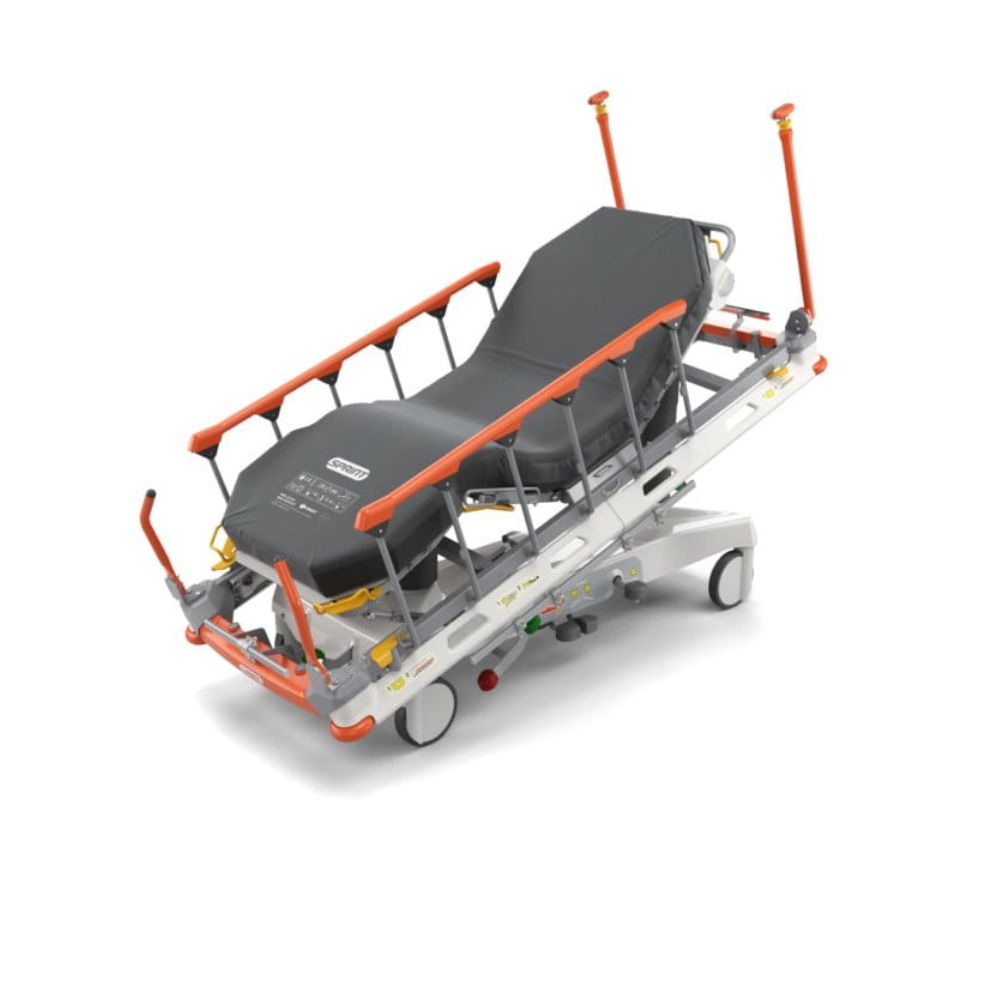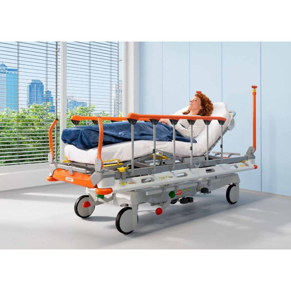 Mobi-Lift® supports safe patient mobility, multizone bed exit alarm notifies staff when patients leave the stretcher, and secure siderails provide added protection to reduce fall risks.