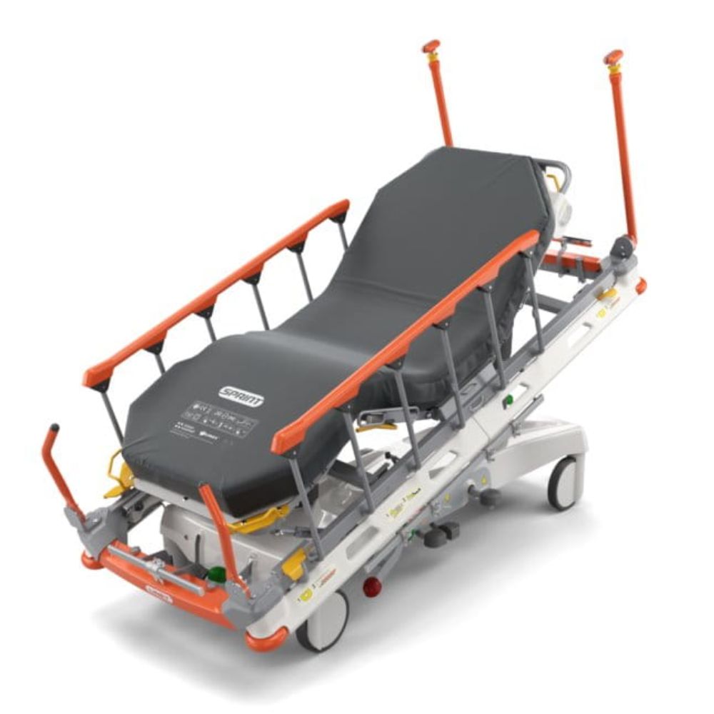 Thanks to innovative IV&Drive® concept, caregivers can push the stretcher from any height.