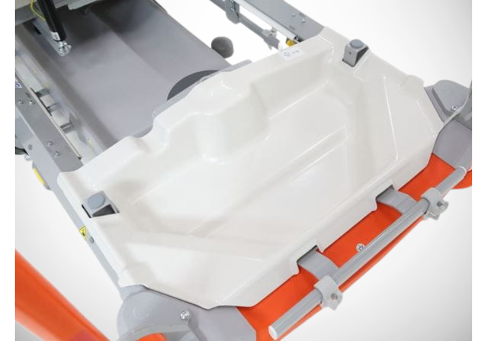 Electric positioning reduces strain during patient positioning, while foot support enables effortless leg positioning. Integrated scales provide accurate weight data without the need for transferring patients.