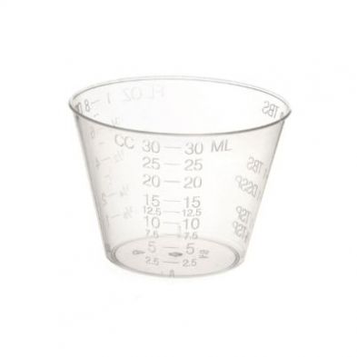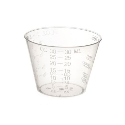 • Translucent plastic cup suitable for dispensing both liquid and dry medications