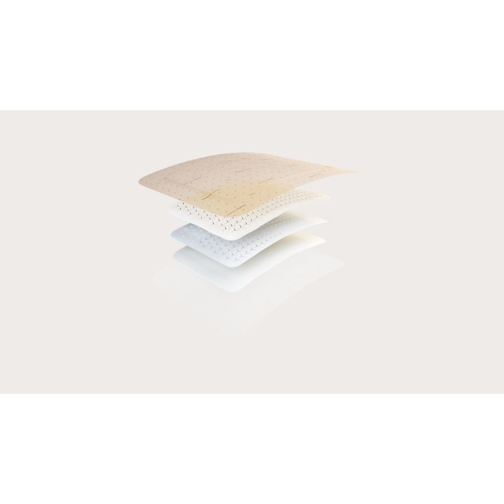 The highly breathable backing film features the new Exudate Progress Monitor – a dot pattern that allows you to easily track and record fluid as it spreads, without disturbing the wound 7. These dot counts can be recorded and shared between nurse visits or shifts, potentially avoiding excess dressing changes.