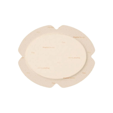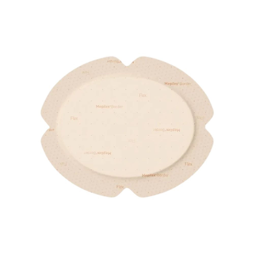Mepilex Border Flex is designed to stay secure on the most challenging areas of the body. Its oval shape was created to allow the dressing to adapt to the contours of the body, thereby distributing forces on its borders* in order to minimise peeling and increase the dressing’s ability to stay in place. In combination with flex technology (perforations in the absorbent pad), this allows for the dressing to stretch and conform 2, which is especially beneficial for joints and bendable areas.