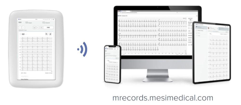 All measurement reports and patient data are automatically stored in the patient record. The information can be reviewed on a computer, through the practice’s information system or on the built-in MESI mRECORDS platform, providing secure access from any web-enabled device.