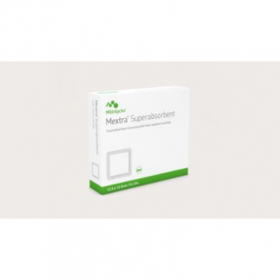 Mextra Superabsorbent design is suitable for managing highly exuding wounds, such as venous leg ulcers, diabetic foot ulcers, and in some cases pressure ulcers. The polyacrylate superabsorbent particles have a protease modulating activity 1 4 5 and provide an environment that's conducive to healing. The fluid-repellent backing material protects against fluid strike-through 1