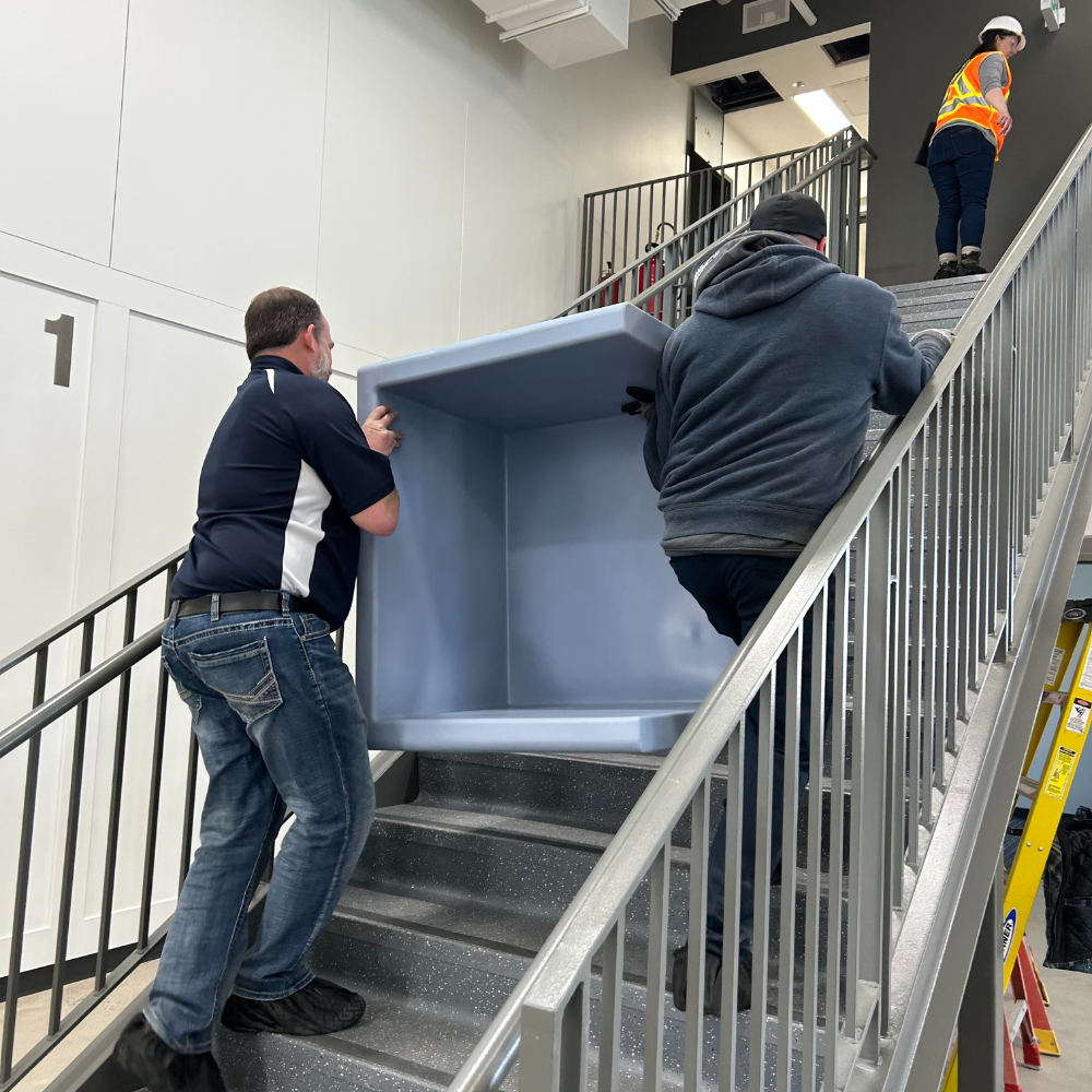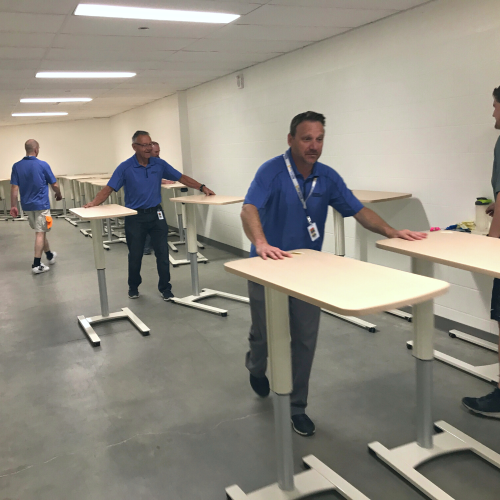Our staff delivered furniture to setup inmate rooms at the Saskatoon Provincial Correctional Centre. The items were received by staff on site and then unpacked and carried to each room. A total of 215 pieces of furniture were delivered: 50 beds, 52 mattresses, 58 chairs, 50 desks, 2 night stands and 3 dining tables. This collection of furniture is specially designed with rounded corners and edges for enhanced safety, stain-resistant material for effortless maintenance, and can be filled with sand or bolted to the floor to stay in place.