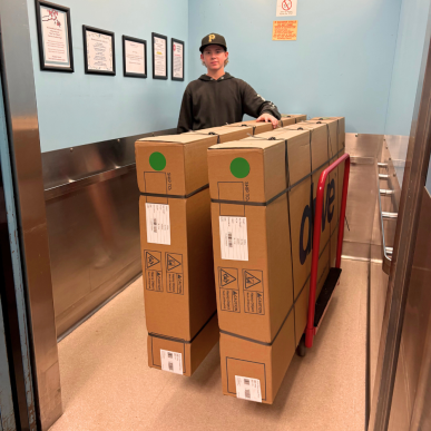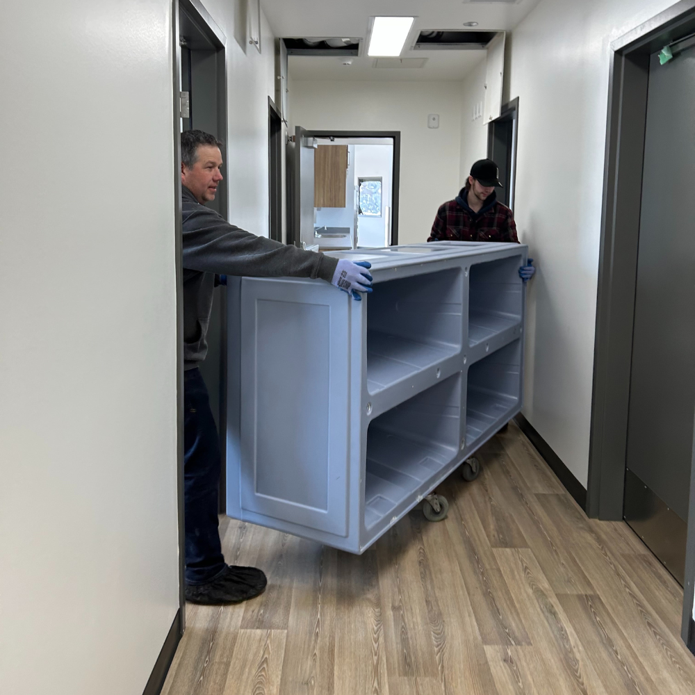 Staff members delivered medical equipment and supplies to a brand new clinic in Big River First Nation. This included items such as exam tables, exam stools, exam lights, diagnostic wall systems, scales, instrument stands, and a variety of medical supplies. They unloaded, unwrapped, and installed the pieces into 2 rooms in the clinic.