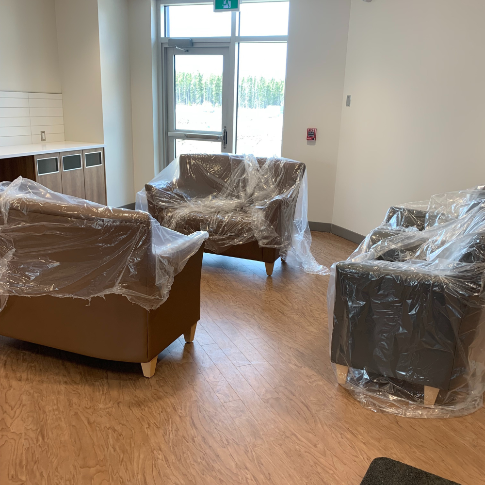 Staff members loaded up and delivered medical equipment and furniture to La Ronge with our delivery truck. This included recliners, waiting room chairs, power exam tables, diagnostic sets, and various other items. They spent the day unloading, unwrapping, and arranging the pieces into multiple rooms. Packing materials, such as boxes and plastic wrap, were folded up and disposed of by our team.