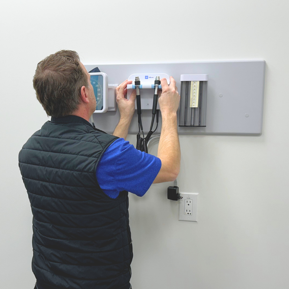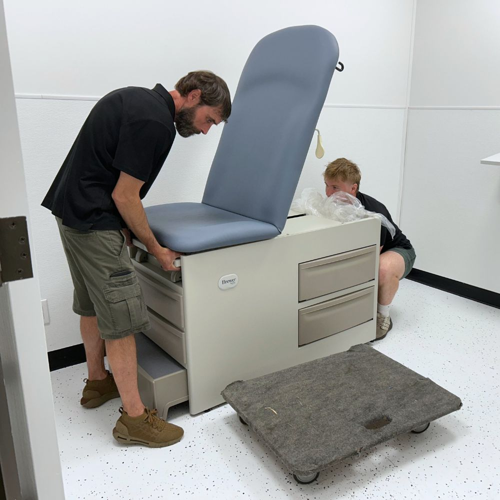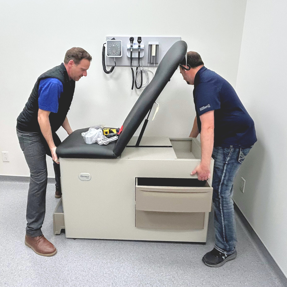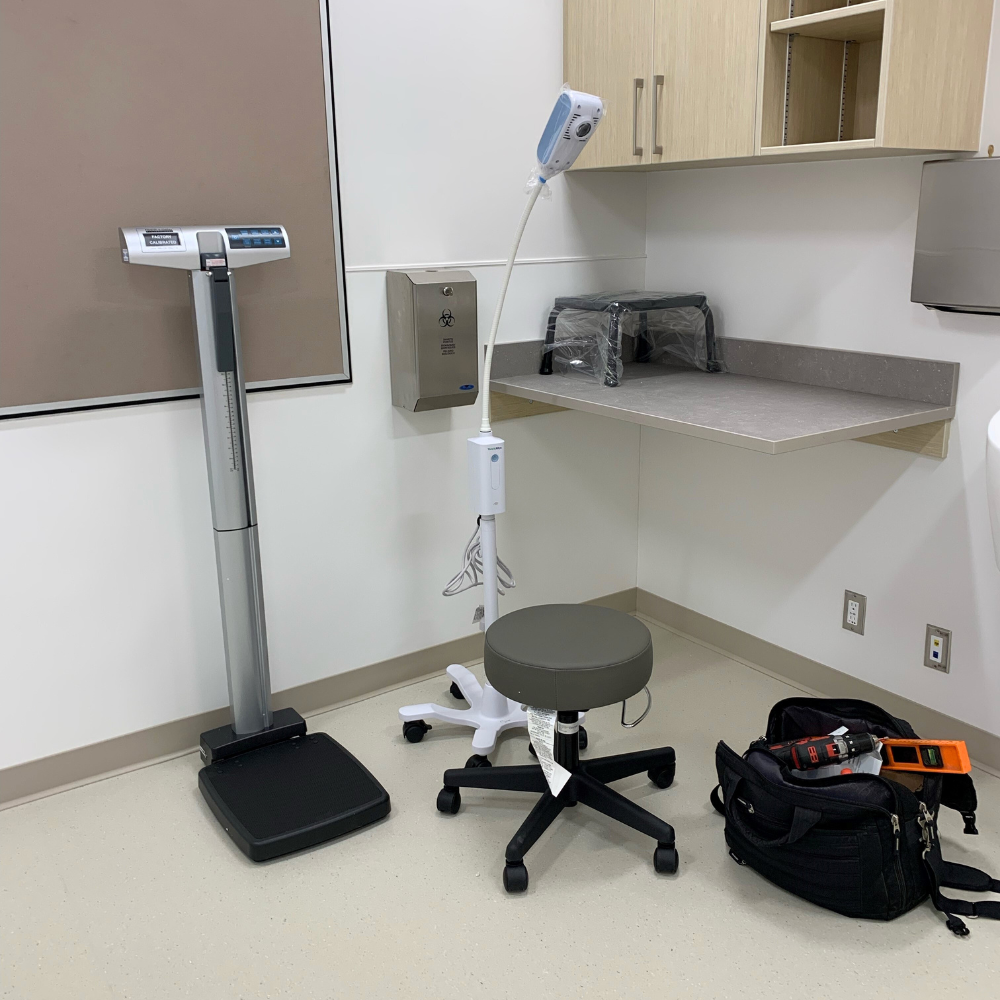 Our staff delivered, unpacked, and installed exam room equipment at a brand new medical clinic in Martensville. A total of 26 items were delivered to setup 6 rooms, including wall boards, exam tables, exam lights, glove box dispensers, and scales.