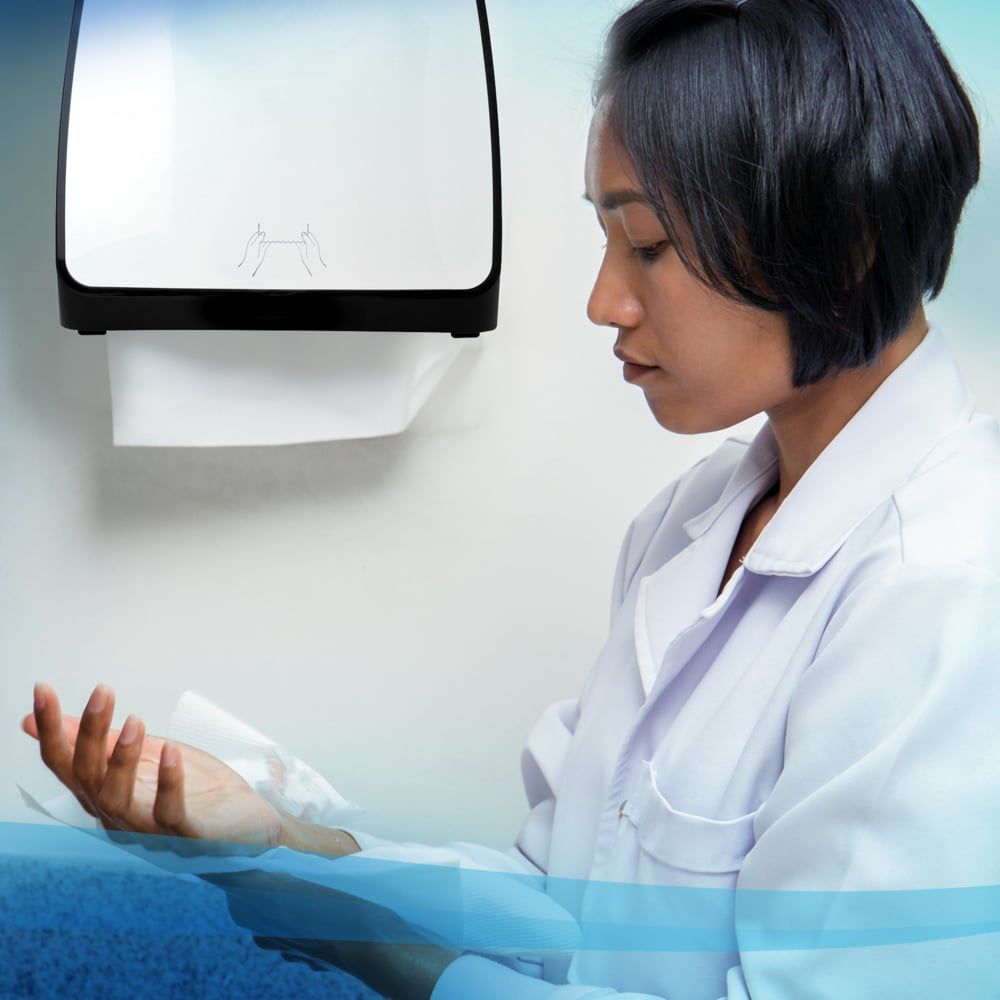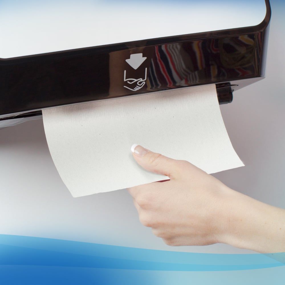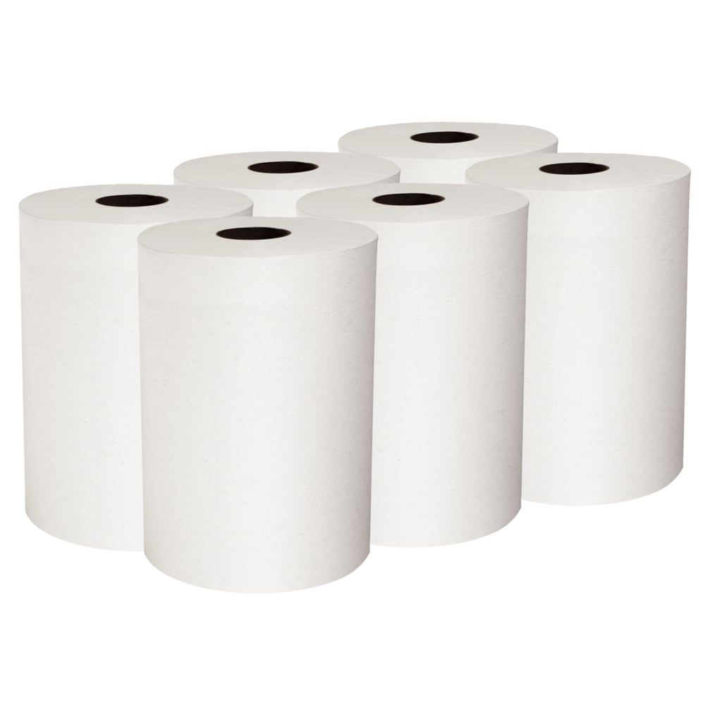 Scott® provides enhanced hygiene solutions for critical environments. Just because you have a small space doesn't mean that you should have to sacrifice the convenience of a high-capacity paper towel system! The Scott® Slimroll Paper Towels are a true breakthrough in touchless hard roll technology, proving that good things do come in small, high-performance packages. It lets you use a roll towel dispenser in places you didn't think possible, like right next to the sink, in a break room, compact offices or at a small nurses' station. With this slim commercial system, you get 8 inches by 580 feet of absorbent, soft recycled paper towels (that's 696 sheets per roll), so you'll need to change the roll less frequently. In addition, these wholesale towels are specially designed to fit with compatible Kimberly-Clark Professional™ dispensers that allow your employees and guests to pull what they need to dry their hands without touching the dispenser or any other towels. Proper hand washing is still the best way to reduce germs – thorough drying with paper towels can reduce germs by 77%.