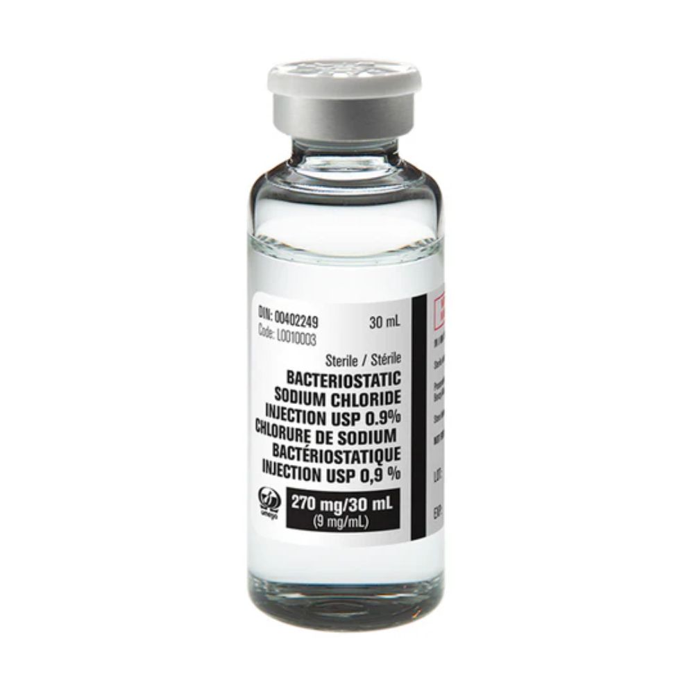 Sodium Chloride 0.9% Bacteriostatic Preservative Vial for Injection, 30mL