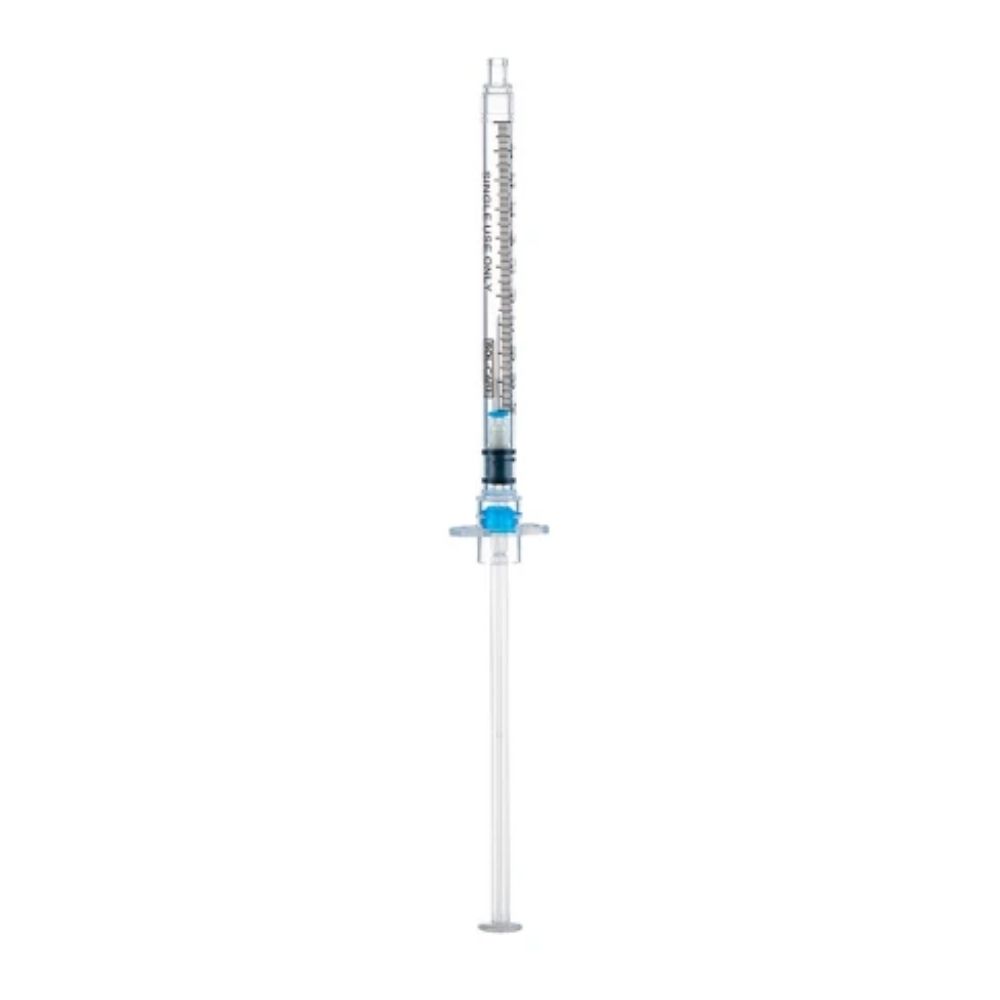 - Needle retracts into the syringe barrel, then the plunger breaks off as a safety feature preventing needlestick injuries and reuse of the syringe