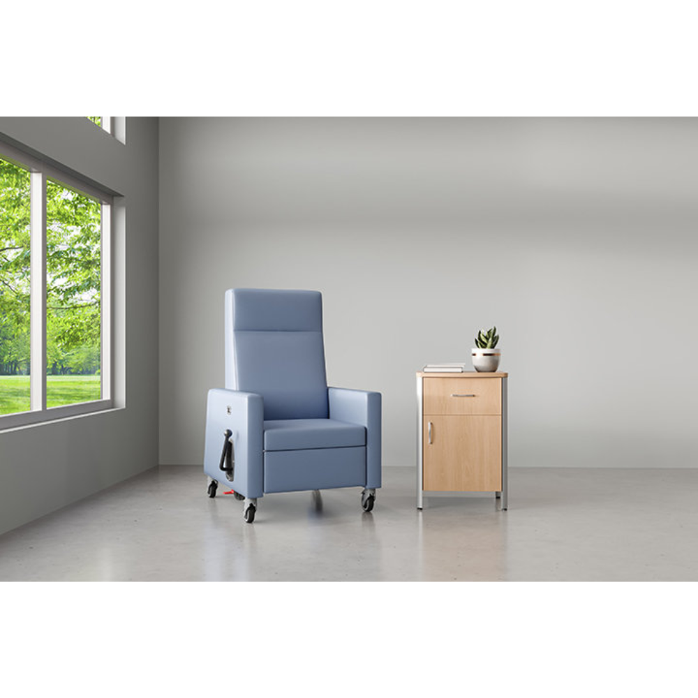 Carson Recliner provides a clean, modern aesthetic and is thoughtfully designed for healthcare environments, with a high level of comfort and ease-of-use for patients and caregivers.