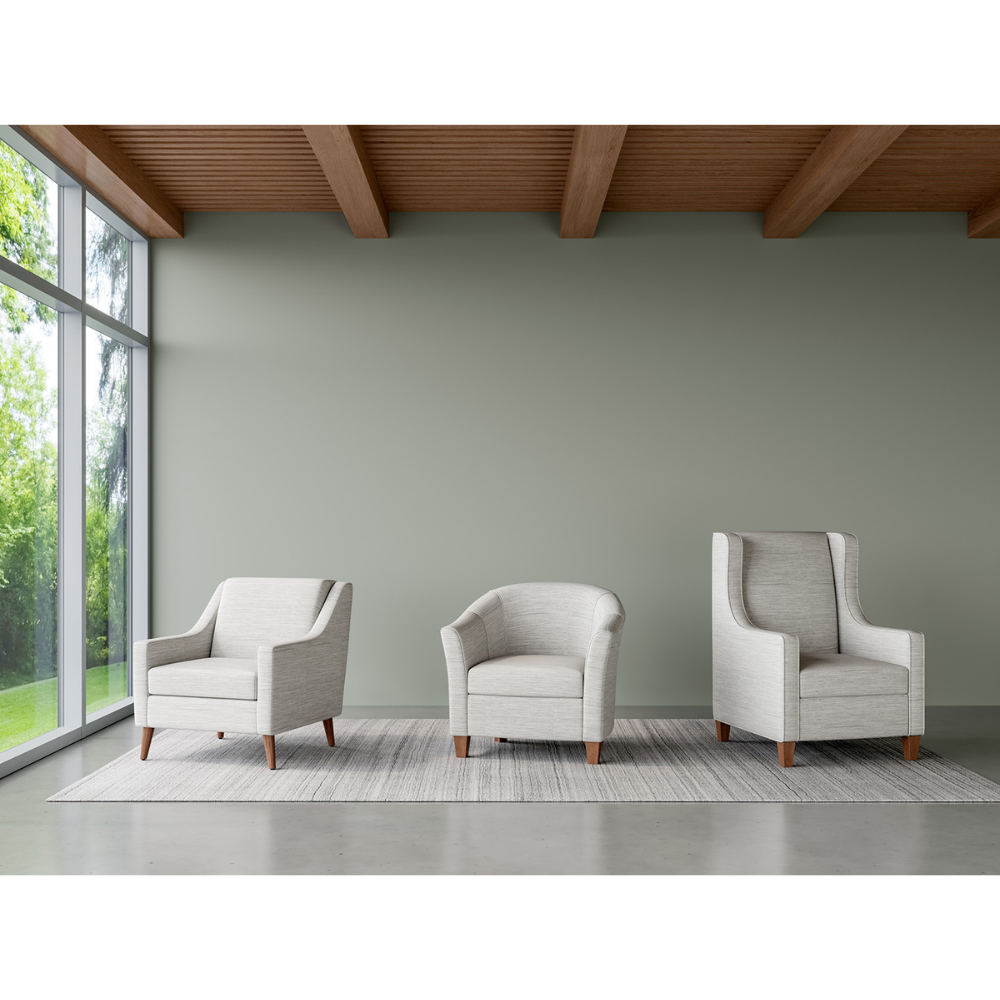 Kalarne lounge seating family offers a timeless, home-like aesthetic that provides support and comfort for patients and their visiting guests.