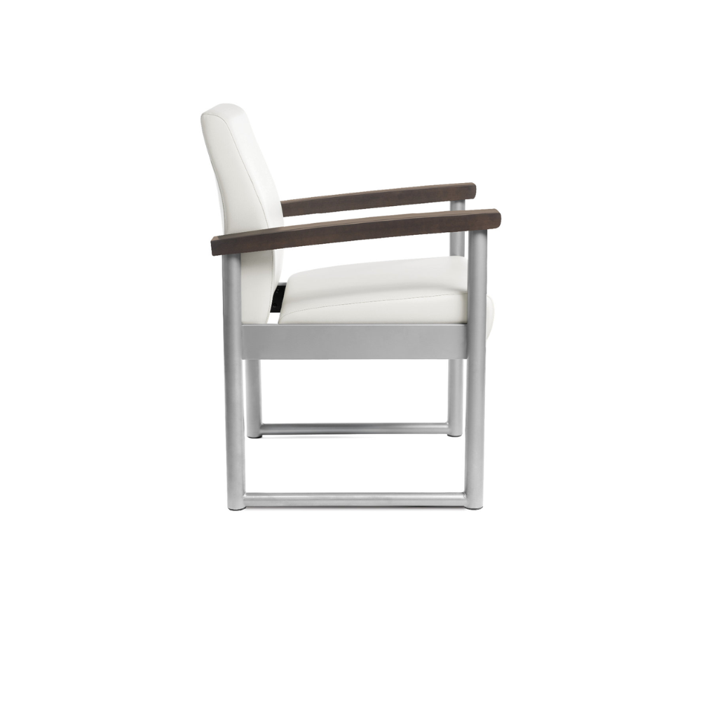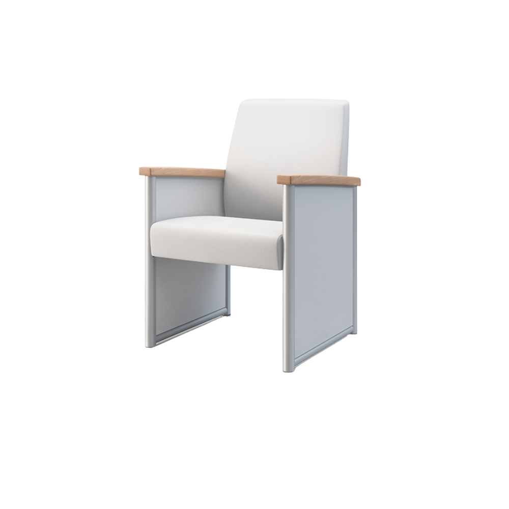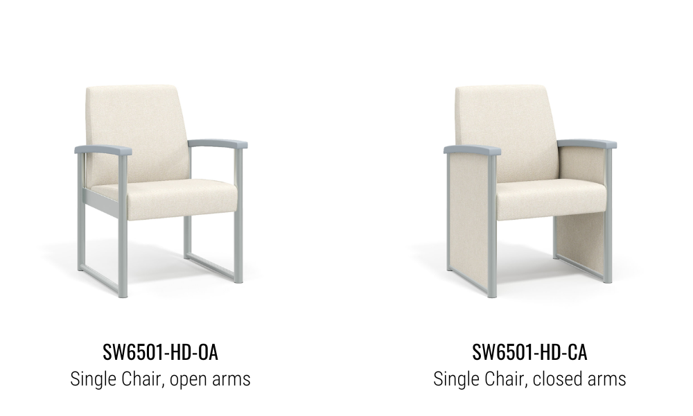 Oasis offers exceptional durability and can be specified with open arms or upholstered arm panels. The Oasis Collection also includes a Glider chair, designed for Behavioral Health spaces.